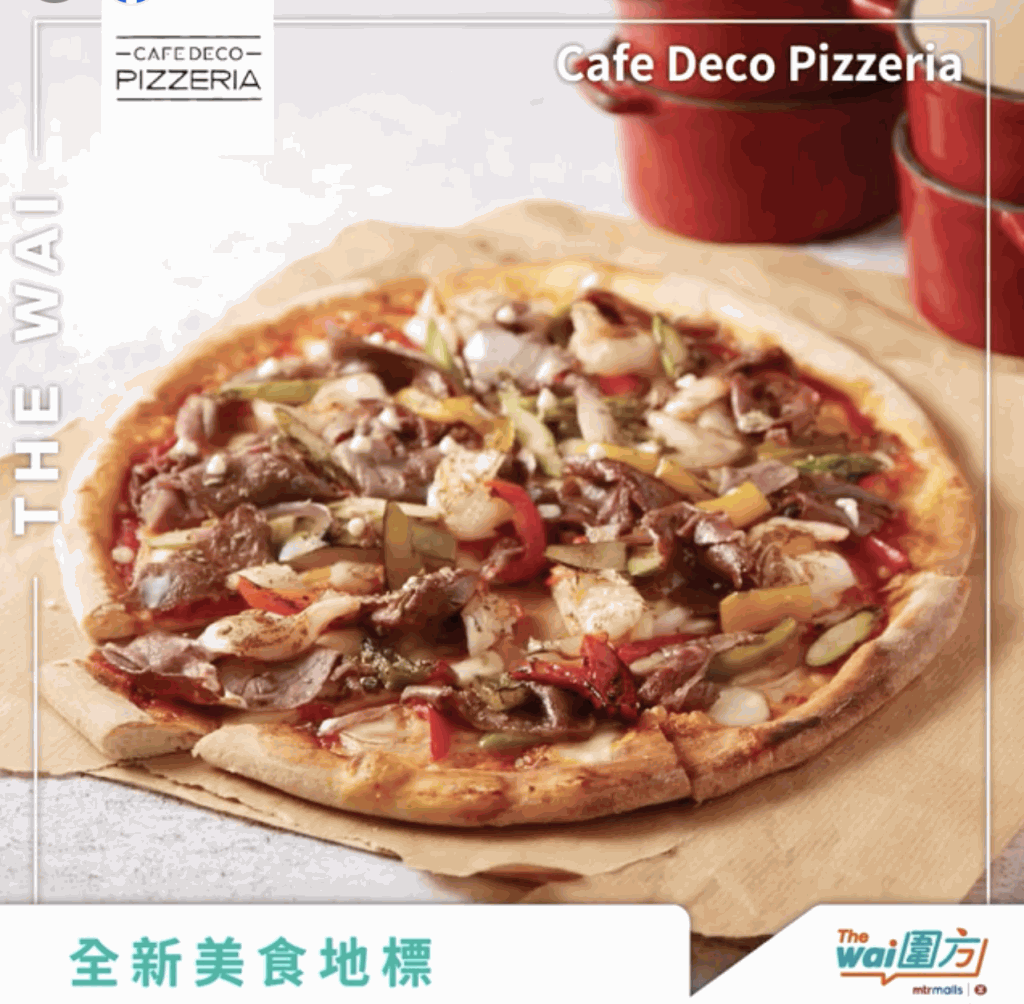 “Cafe Deco Pizzeria ”以简约格调为主,环境舒适开扬。餐厅採用世界顶级高温石炉烤焗,主打即叫即做的意式薄饼,另外也提供其他国际式美馔。