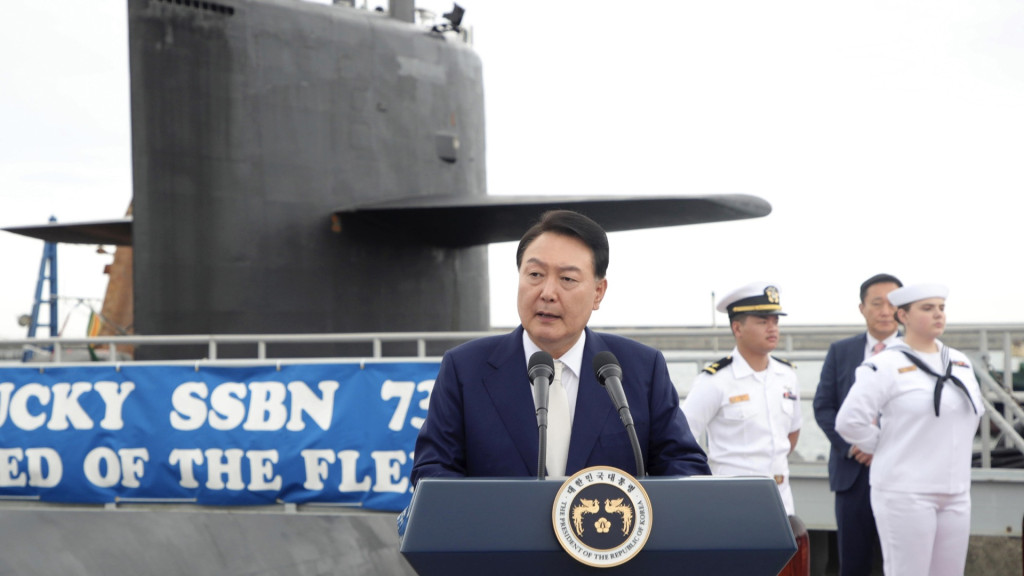 尹锡悦向美国总统拜登等美方人士致谢,形容肯塔基号停在韩国,令人感到踏实及放心。 他又说据他所知,自己是第一个登上美军战略核潜艇的美国盟国总统。