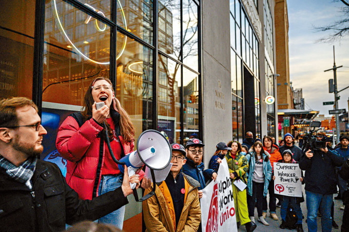 ▲美国科技业近来大裁员,加拿大趁机抢人才。图为Alphabet员工年初在纽约Google办公室外抗议裁员。