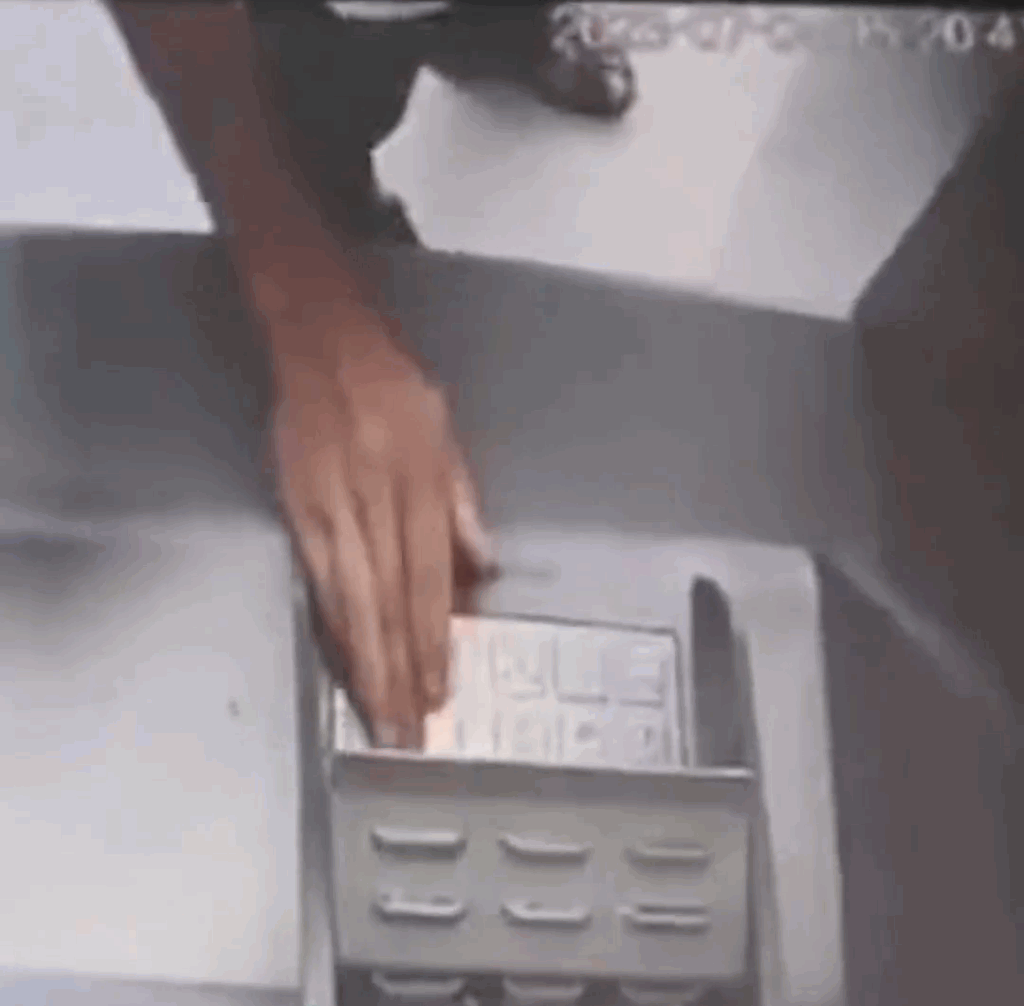 综合媒体报道,银行闭路电视画面显示,一名男子拿着一叠冥币先塞入柜员机,随后该男子转向另一台柜员机,查看自己银行卡内的余额是否增多,动作超级诡异。