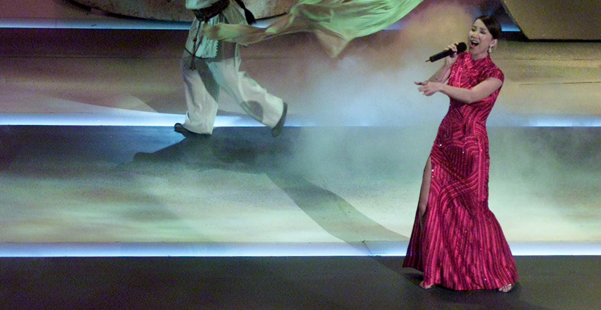 该件红色旗袍对CoCo可谓相当重要,因她于2000年获邀为李安执导的电影《卧虎藏龙》演唱主题曲《A Love Before Time》,并凭着流利的英语同时演唱中文、英文版,其后这首主题曲入围美国第73届奥斯卡金像奖“最佳原创歌曲奖”,CoCo成为首位登上奥斯卡金像奖演唱的华语歌手,李安透过助理忆述,CoCo登上奥斯卡颁奖典礼前曾对他说:“我是第一个上奥斯卡唱歌的亚洲人,一定要拼命唱!”故CoCo对该件旗袍可谓珍而重之。