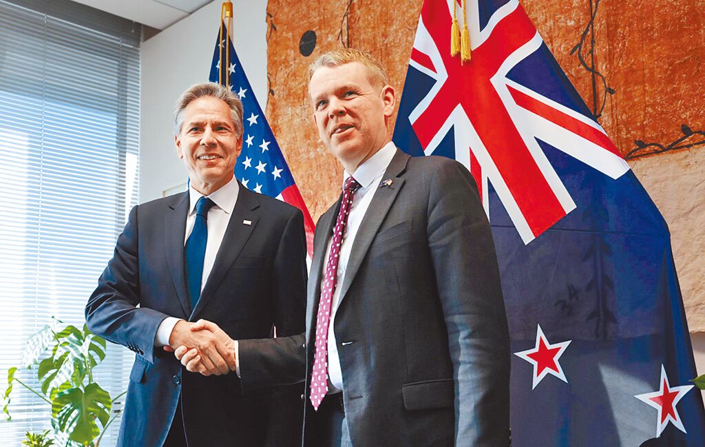 ▲美国国务卿布林肯(左)27日访问新西兰,与新西兰总理希普金斯(右)会晤。(摘自美国国务卿布林肯推特)