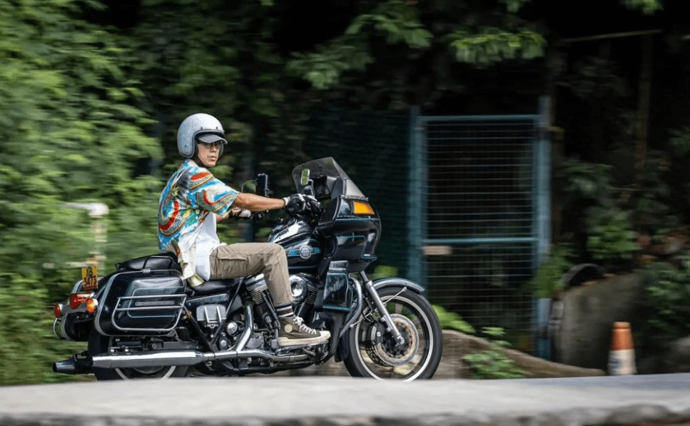 讲到购入电单车,原来他首先购入Honda CB750作为操车之用,及后换了1981年生产的古董Harley-Davidson Shovelhead Flx,大概以11万港元购入,由美国送抵香港后要去大修,之后去运输署出牌。