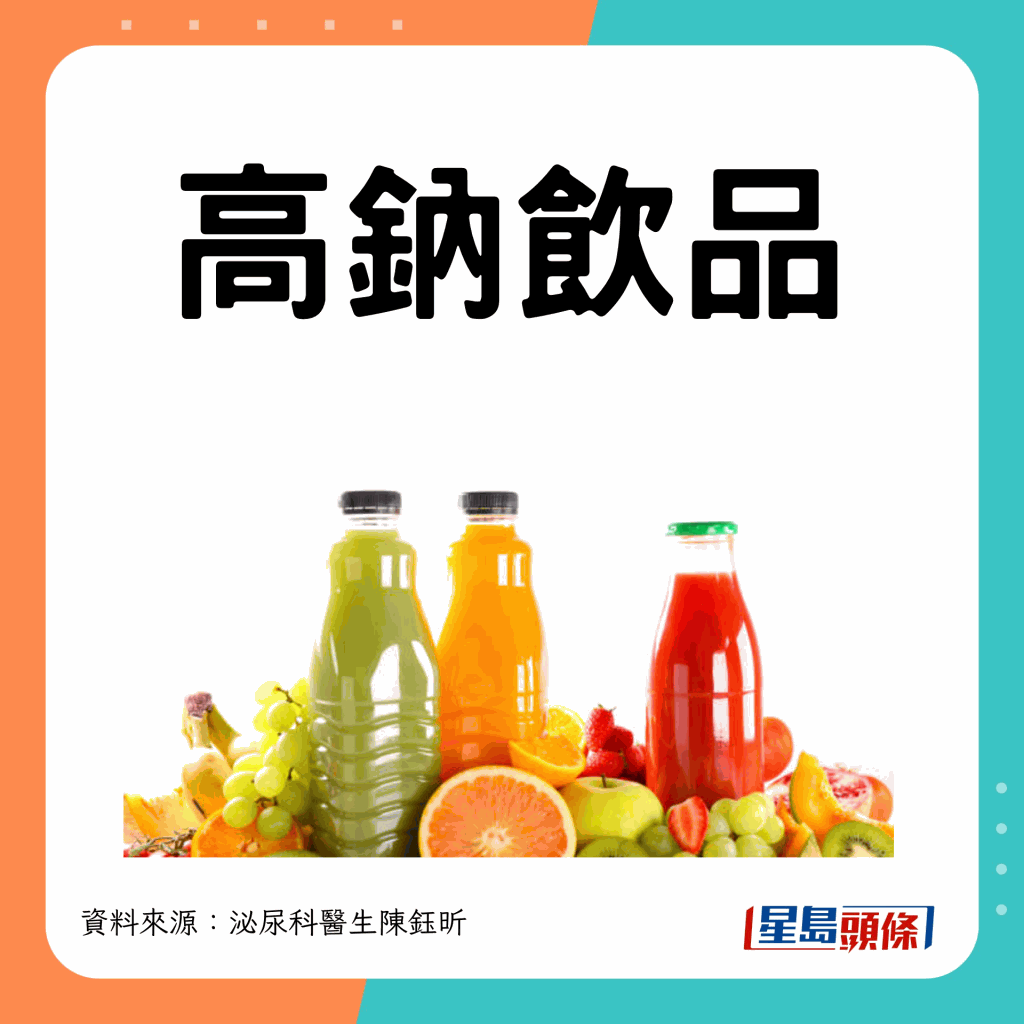 肾脏科医生江守山在节目《健康好生活》上表示,生活上有不少隐藏的高钠食物,即使味道不咸,或已经标榜为无盐的食物,也有可能属于高钠食物,例如一块无盐牛油的实际钠含量高达400毫克。根据世衞建议,成人每日应摄取少于2,000毫克钠,大约相当于5克食盐(即略少于1平茶匙)所含的钠,而一块无盐牛油已佔5分1。