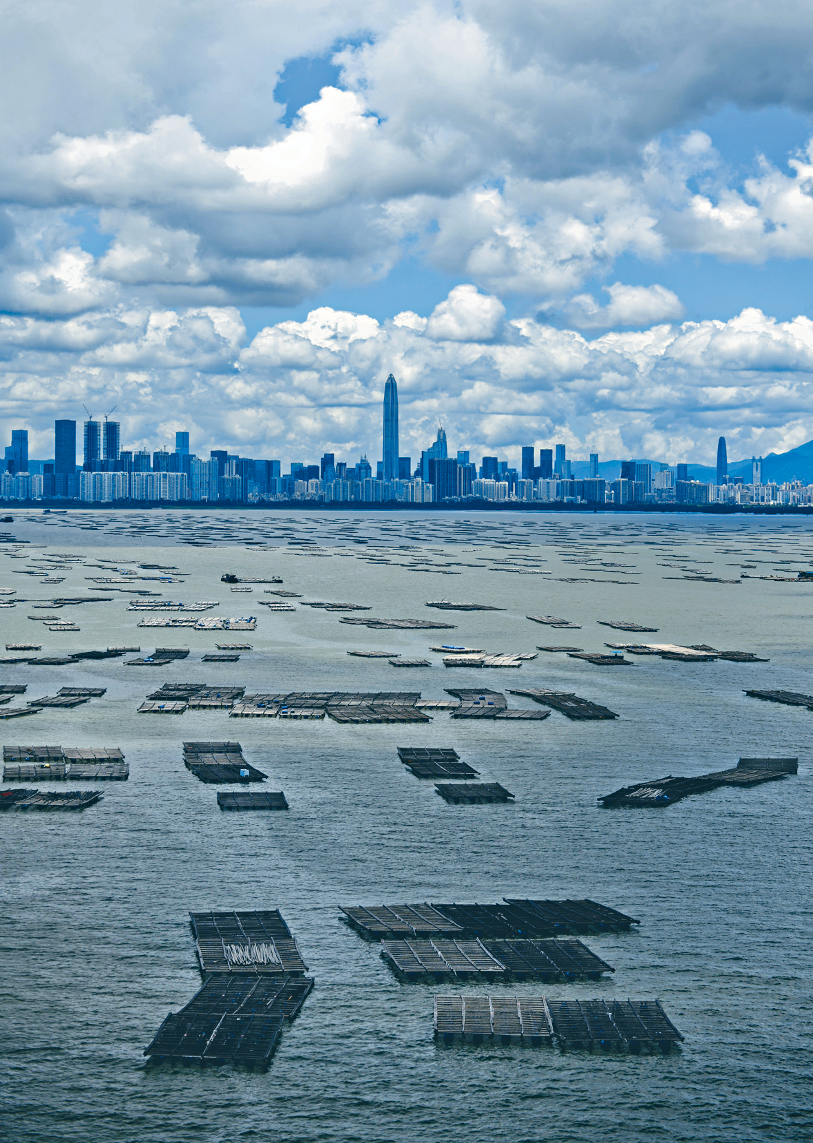 ▲近年新建的蚝排,部分伸展至海中心,位于深圳湾大桥两旁。