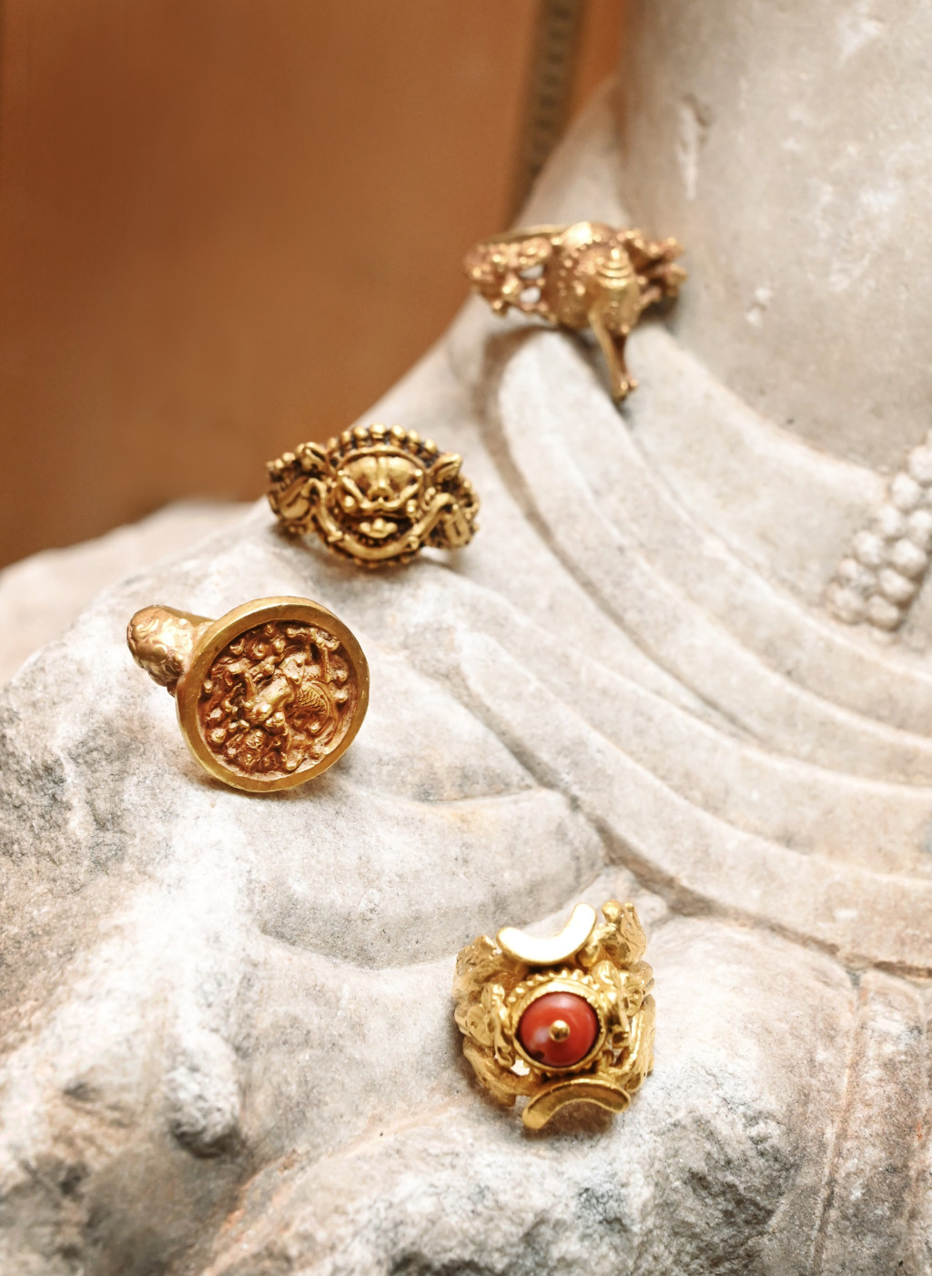 ▲搜罗自印尼爪哇(Java)的十世纪24K黄金指环,当中的雕刻工艺非常出色,即使经年累月,依然看出细密精工。