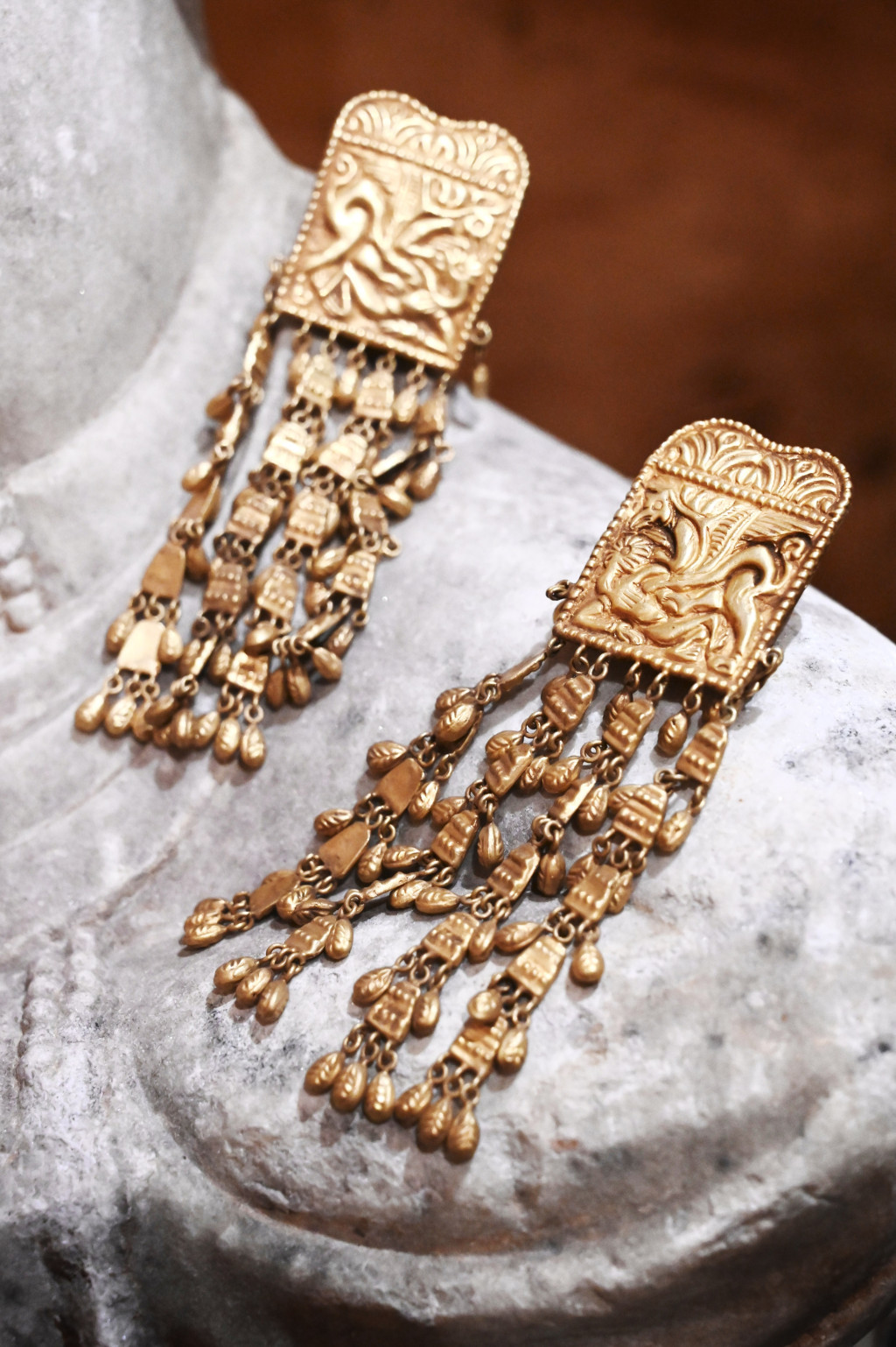 ▲公元前200年的24K黄金耳环,在黄金薄片上雕刻极考工夫,而流穗由一颗颗雕刻黄金珠子串连成,设计巧见心思。