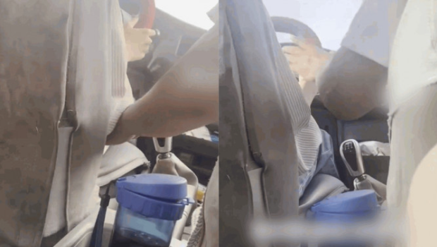 目击者拍摄的影片中,坐在副驾驶的教车师傅身穿白色短袖衫。女学员练习驾驶时,他握着女孩的手手动握档、拍打女孩握着方向盘的手,又不时拍其大腿。