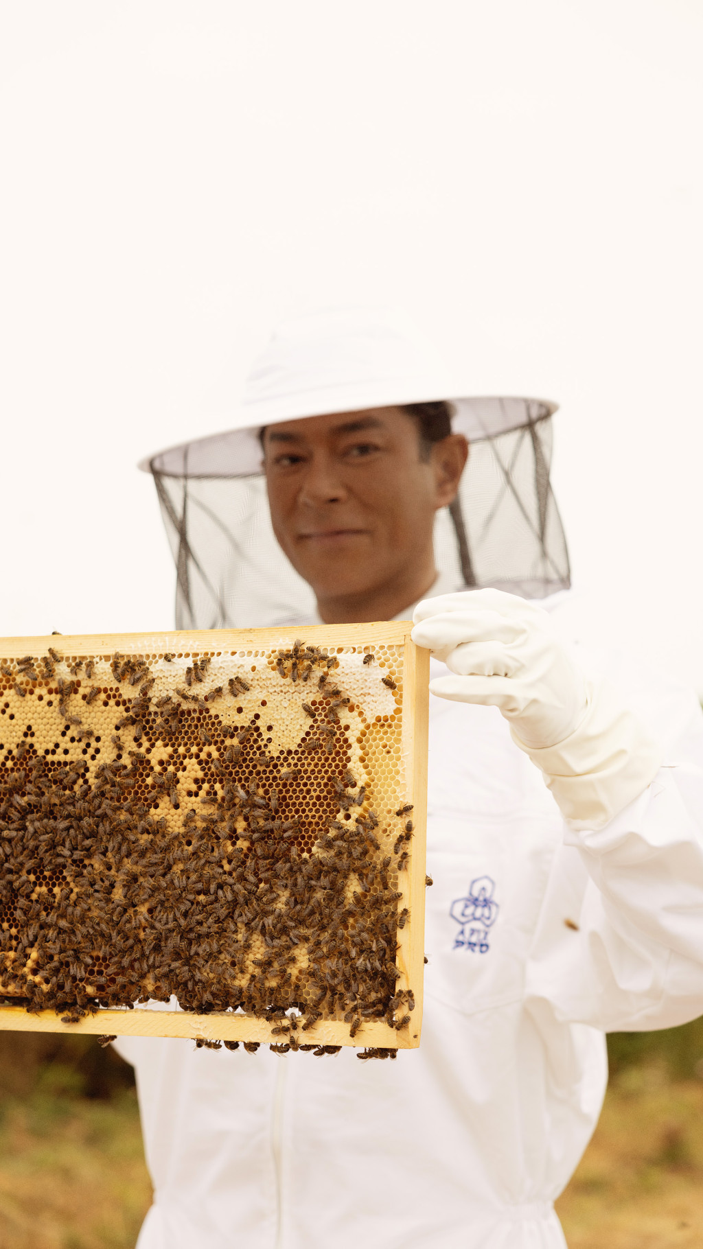 其后古天乐在当地专业养蜂人的带领下,体验养蜂人的日常,面对现场充满无数黑蜂,古天乐面不改容地学习,其后在养蜂人的指导下,初尝养蜂滋味的古天乐亦做得有板有眼,更小心翼翼拿起充满黑蜂的蜂巢合照,生怕令珍贵的黑蜂受伤,可见其尊重与爱心。