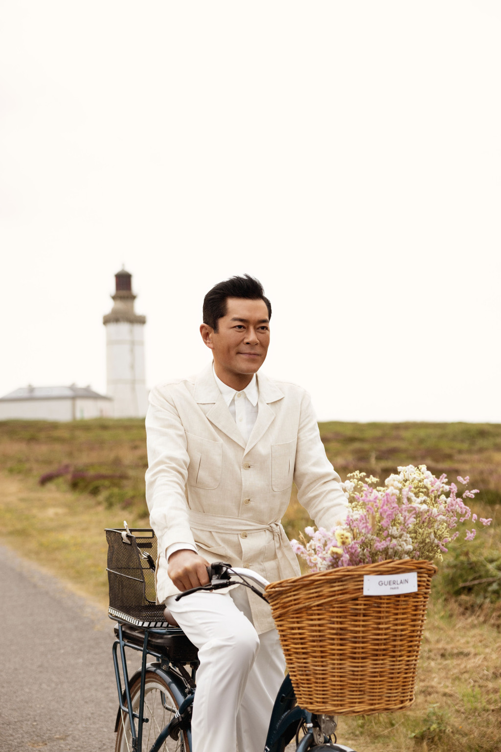 ▲甚少进行户外运动的古天乐,在清幽的乌埃尚岛上踩单车。