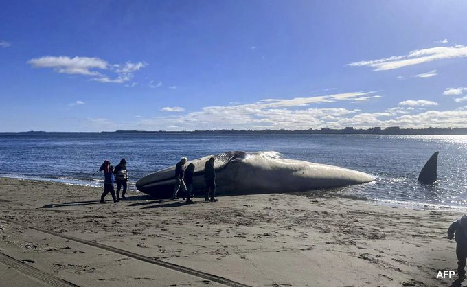 法新社报道,智利南部奇洛埃岛(Chiloe Island)安库得市(Ancud)的居民,最早于昨天在临太平洋的海滩看到这头蓝鲸,当地位在首都圣地亚哥(Santiago)以南,两地相距约1000公里。