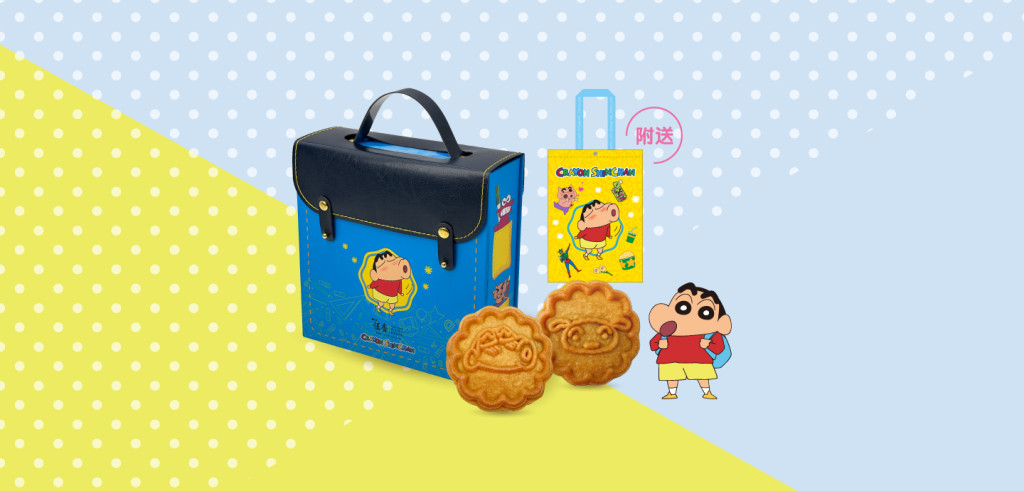 若你是日本人气卡通《蜡笔小新》的拥趸,别错过恒香老饼家的“蜡笔小新 X 恒香中秋产品”,好像当中的“蜡笔小新 X 恒香团圆礼盒”,以粉蓝及粉红色日版小书包设计为月饼礼盒,外形有趣可爱。内有4件迷你蛋黄白莲蓉月饼,采用顶级湘莲制作的白莲蓉,配原只蛋黄及松软糖浆饼皮,月饼面印上经典小新索吻表情及小白可爱大头照,可爱又美味。随礼盒更附送限量版蜡笔小新购物袋一个,设计抢眼。
