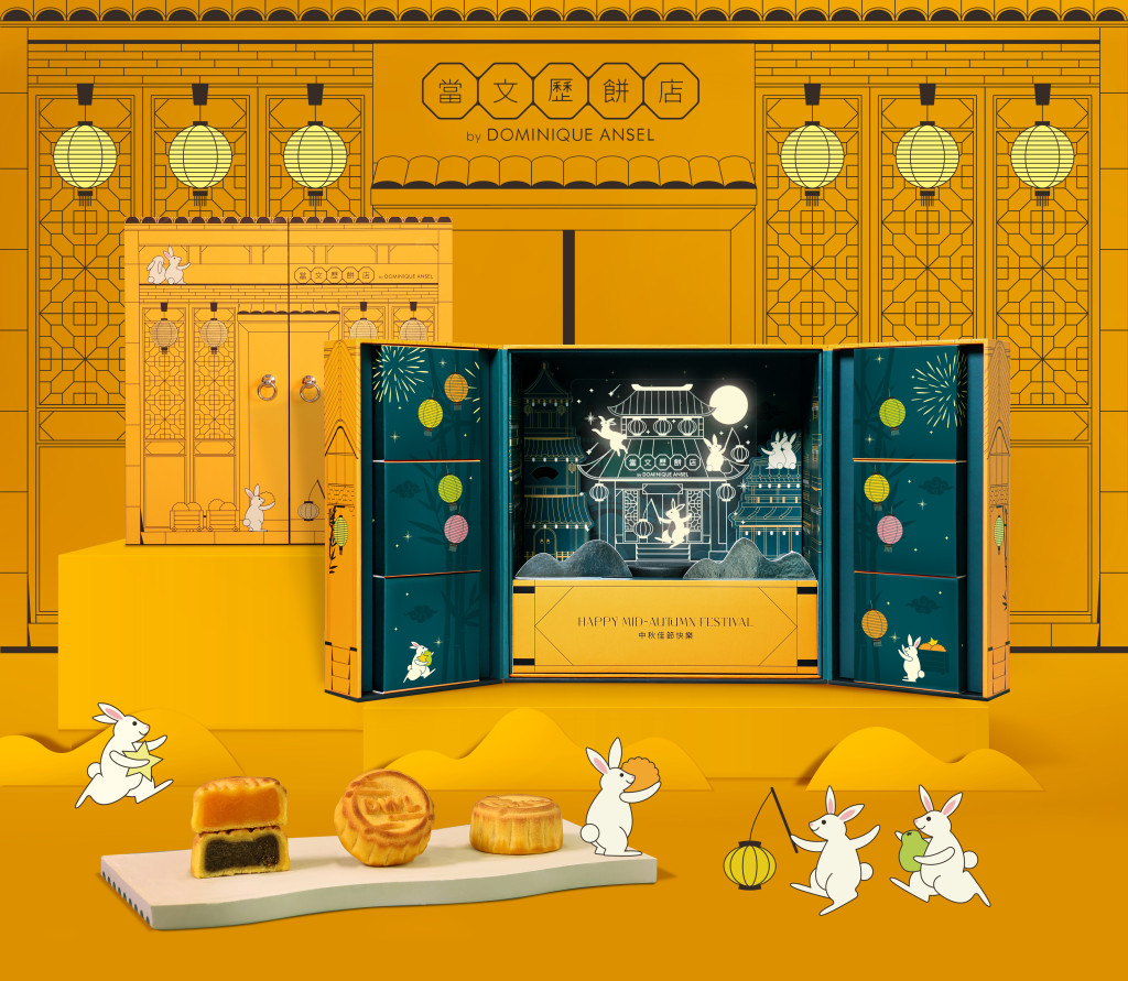 ▲当文历饼店by Dominique Ansel的“玉兔戏庭院月饼礼盒”,以中式庭院为设计主题。