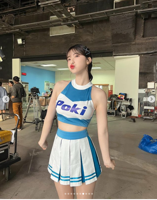 ▲乐天女孩队长蓝蓝扮嘟嘟嘴