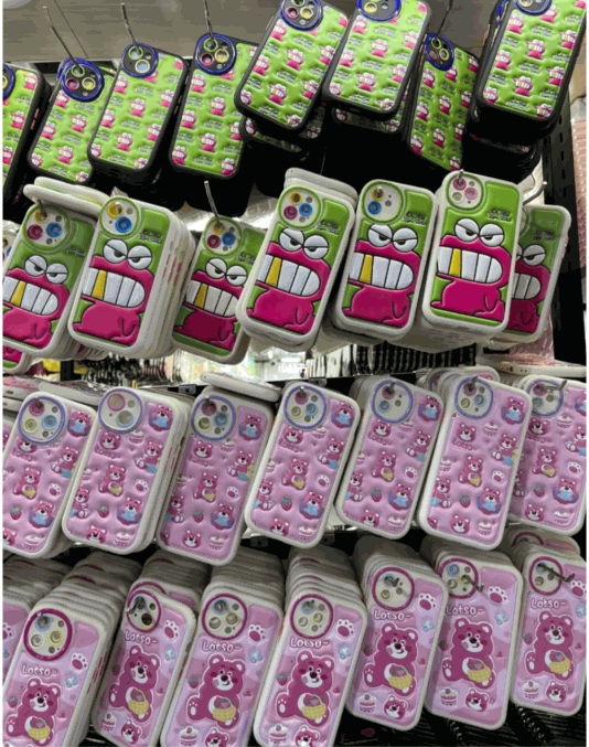 从网上图片可以看到,手机壳款式多达逾万款,例如有迪士尼卡通、日本动漫、手绘风格、油画风格、少女风格等、当然也少不了简约透明或纯色的手机壳;而材料质地也有多个选择,当中有如硅胶、硬塑胶、皮革、金属、钢化玻璃等等,价钱由人民币¥2起跳,款式材料花多眼乱,难怪网友都声称在华强北买手机壳,可以“逛足一整天!”