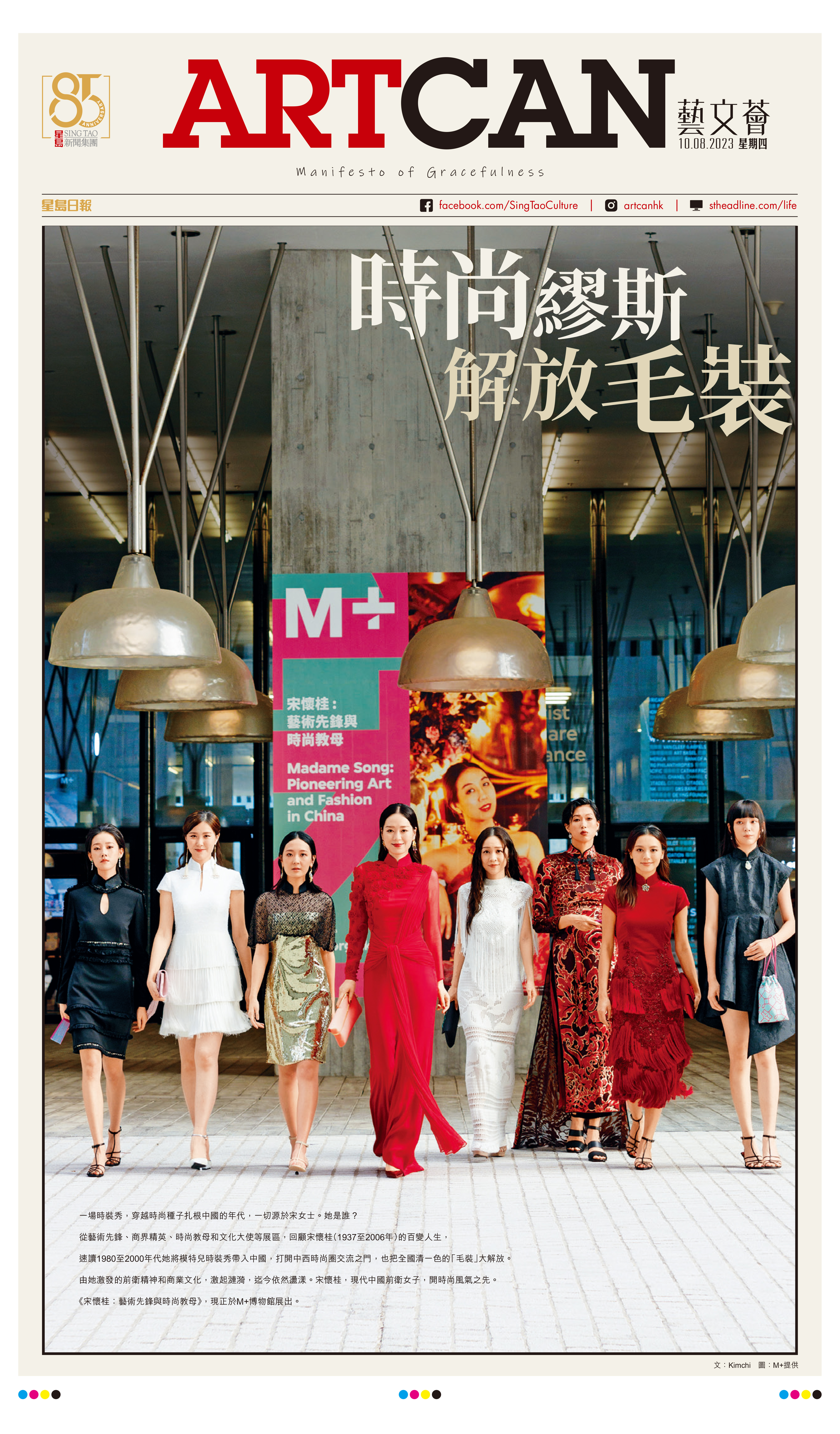逢周四随《星岛日报》附送的“ArtCan”,今日迎来大改革后的第二期!本期封面故事,介绍正在M+博物馆展出的展览《宋怀桂:艺术先锋与时尚教母》。宋怀桂到底是何方神圣?她是艺术先锋、商界精英、时尚教母,也是文化大使。本期细述她在1980至2000年近20年的时间里,如何将模特儿时装秀带入中国,打开中西时尚圈交流之门,将全国清一色的“毛装”大解放。