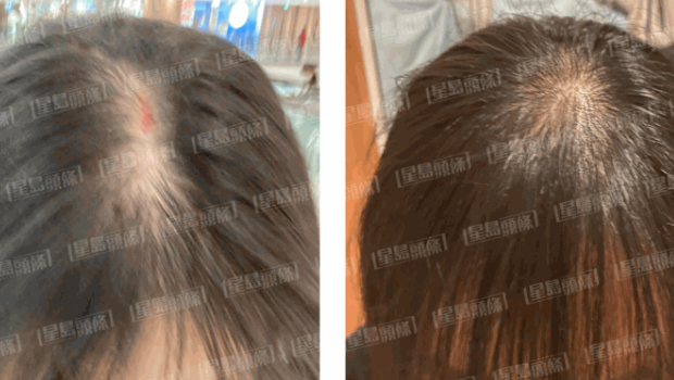 经过6星期治疗后,该女子发量明显增多,分界稀疏、发际线后移的情况亦已改善。另外,她全身不适症状大为改善,心情变得平和、怕冷问题消失、头油分泌回复正常,以及大便回复正常,变为每日1次。