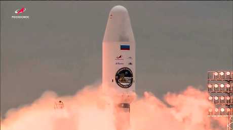 ▲月球探测器由联盟号火箭运载发射升空。 美联社
