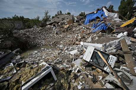 ▲扎波罗热有住宅大楼中弹,损毁严重。 路透社