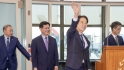 ▲赖清德过境美国抵纽约,面带笑容挥手。中央社