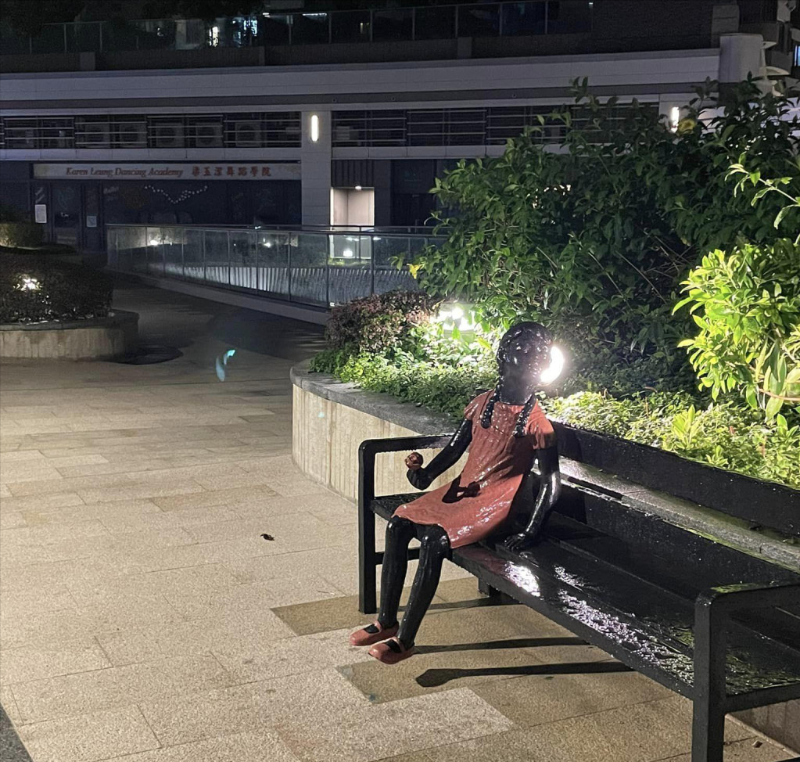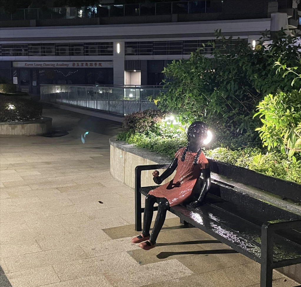 据悉,这几个位于将军澳私人屋苑海翩的雕塑已经存在多年,以往也有街坊发帖表示吓人。这次的帖子更是引发不少网友留言,“好X恐怖,不熟的人夜晚经过都要吓死”、“谁想出来的雕塑”、“寒到不用开空调”。