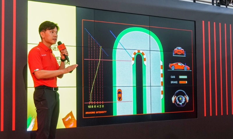 活动教练团队包括总教练香港车手甄卓伟(Andy Yan)及四位内地车手。试车前Andy先讲解驾驶注意要点,如坐姿与軚环调校、赛道特点及过弯技巧等,而为了安全,传媒试车是需配戴头盔。他指出:“松油门、制动、扭軚入弯、出弯加速是跑弯基本步骤。纸上谈兵颇容易,要完成得好需一定技术。赛道有别公路,建议弯前一记重brake,感觉车速开始减慢,便松离踏板以造就较佳入弯条件。可以的话,出弯边回軚边加速,且视线要看远点,预早作准备,timing很重要。”V1天津赛场总长4,290米,设19个弯道,特色是难易兼备。活动采用最短2,400米Track D(共分四种组合),但已包含90度弯、手臂弯、S弯及约400米大直路,足够考验人与车。