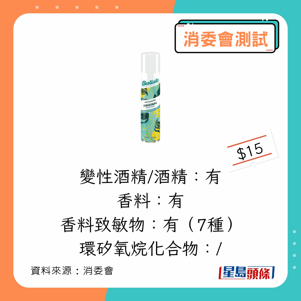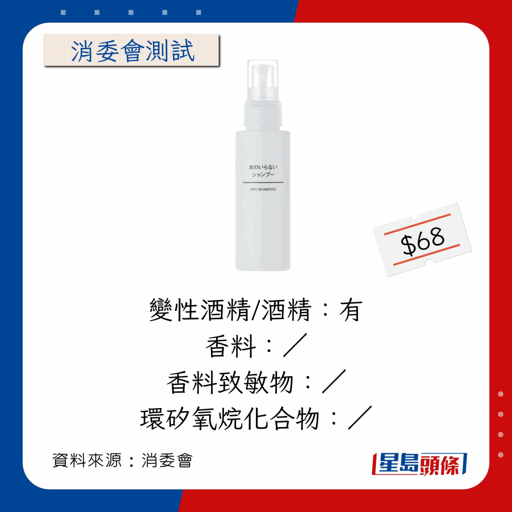消委会早前检视市面上21款免冲水洗发用品样本的标签资料,当中11款为压缩气罐装喷雾、4款为粉末或粉末喷雾,以及6款一般液体喷雾、啫喱或慕丝产品,每枝售价由HK$15至HK$410不等,其中3款为旅行装产品,容量较同类产品少。