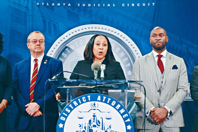 ▲乔治亚州富尔顿县地方检察官威利斯,周一介绍对特朗普等人的起诉。