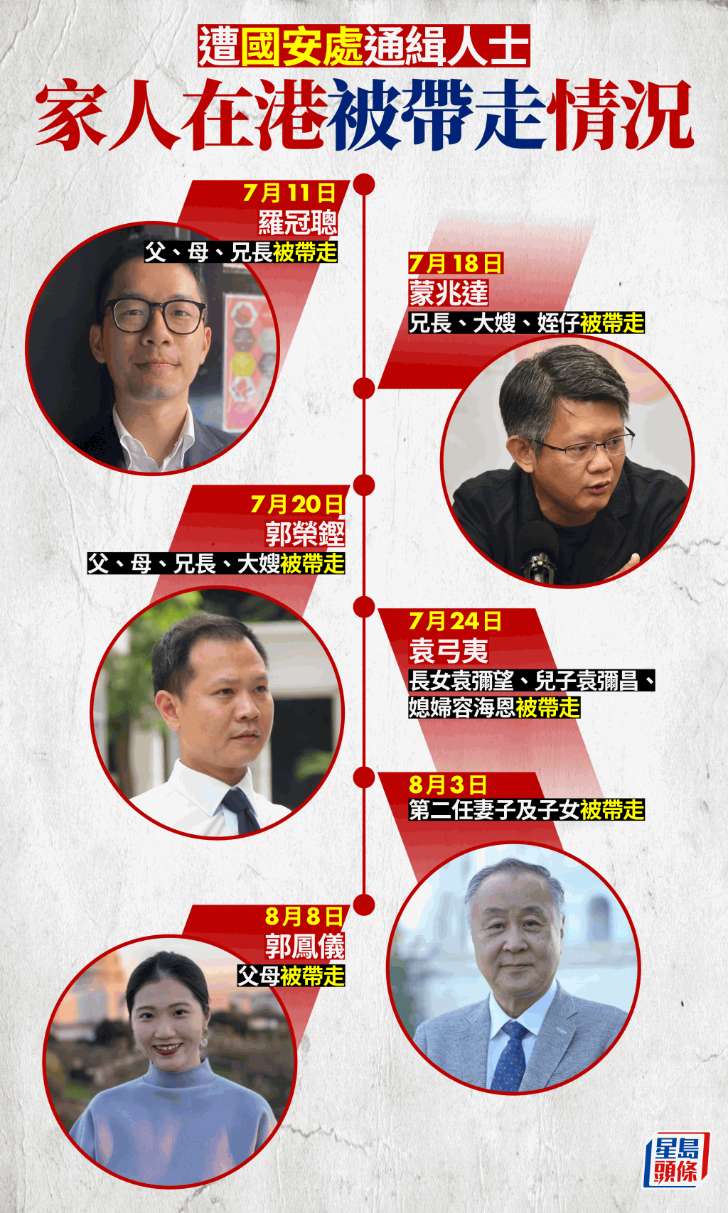 ▲国安处通缉8人,其在港家人曾被带走问话。