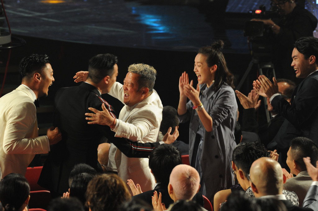 ▲2017年曾志伟凭《一念无明》获得金像奖最佳男配角,曾国祥与曾宝仪亦在台下祝贺。