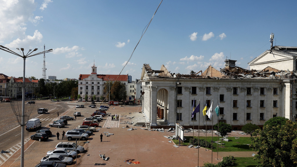 ▲切尔尼戈夫剧院被击中,整个屋顶被炸毁。 路透社