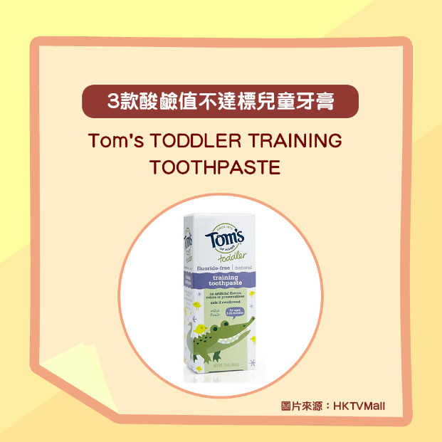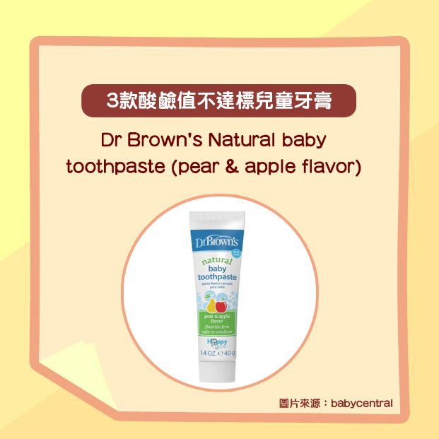 父母都关注小朋友牙齿健康,儿童牙膏种类多,消委会就特别测试市面30款普通和儿童牙膏样本,当中发现13款儿童牙膏样本中,有3款的酸碱值太低,未能符合内地标准,有机会损害珐琅质;另有6款儿童牙膏含有有助强化牙齿的氟化物,惟当中2款声称含氟的儿童牙膏,包括售$55的“Baby Coccole”抱抱BB牙膏 (苹果味)(#5)和售$50的“Elmex”艾美适0–6岁儿童牙膏(#6),氟含量太低,或未能加强巩固牙齿。即看消委会评测儿童牙膏报告。