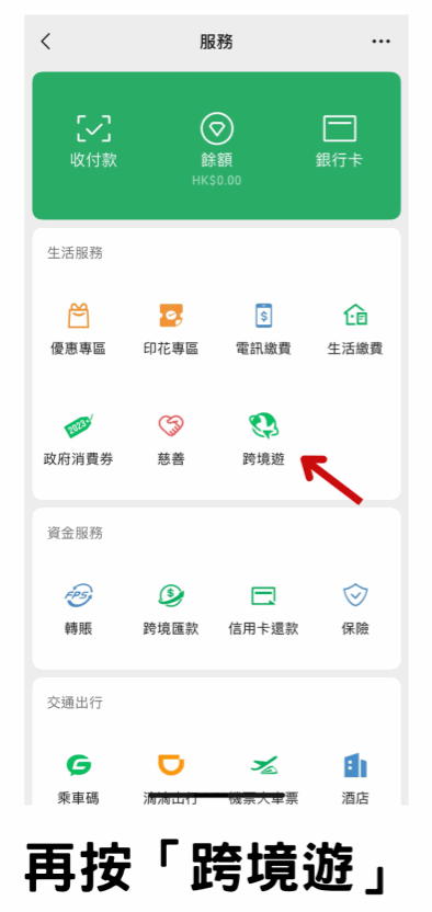 WeChat Pay HK推出全新“跨境游”页面,WeChat微信用户只需点击“我”,再选择“服务”,按下“跨境游”,即进入详细页面列表,当中有逾100个小程序,包括海关旅客指尖服务、身份认证、跨境交通、内地交通、住宿门票;此外还有预购饮品、甜品小食、快餐、美食,甚至连超市便利店都有,集合喜茶、海底捞、鲍师傅、太二酸菜鱼等多个港人至爱的餐饮热点。