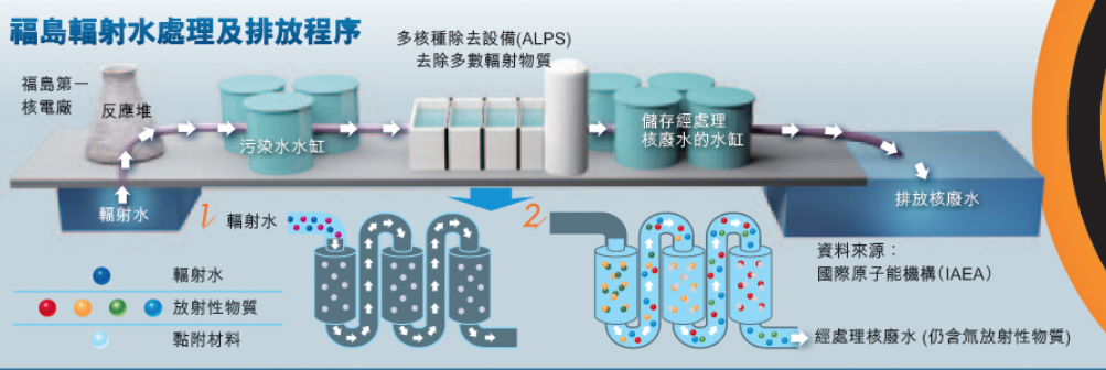 福岛第一核电厂在2011年3月遭受海啸侵袭,引发炉心熔毁,为冷却熔融核燃料团块,又制造出污染水。东京电力公司利用净化装置去除多数辐射物质,最后变成“处理水”。1000多个储水罐中的核废水已超过134万吨,而且为了冷却熔融的核燃料,每天新增约100吨核废水。 核废水排海将经过“处理”、“测量”、“稀释”及“放流”4道手续。