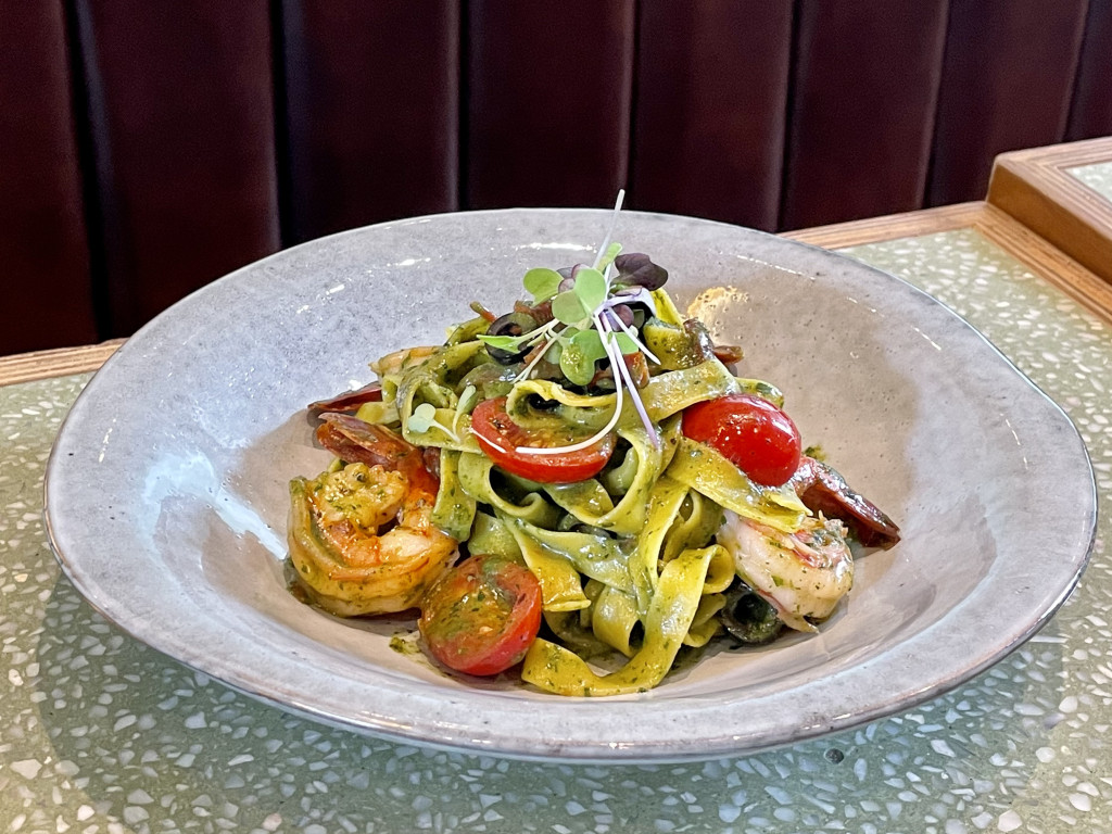 记者今次试匀各款新菜式后,心水推介意大利香草酱大虾阔扁面,厨师特意采用口感带点烟韧的手工阔扁面,面底富有蛋香,加入了自家调制香草酱,味道比起坊间的香草酱清新而不油腻,大虾则选用了体型较大的越南虎虾,肉质扎实、虾味浓郁。另一推介是在大埔分店亦同样受欢迎的新鲜波士顿龙虾意粉,龙虾肉质弹牙,手工意粉挂满龙虾酱汁,味道超浓郁!