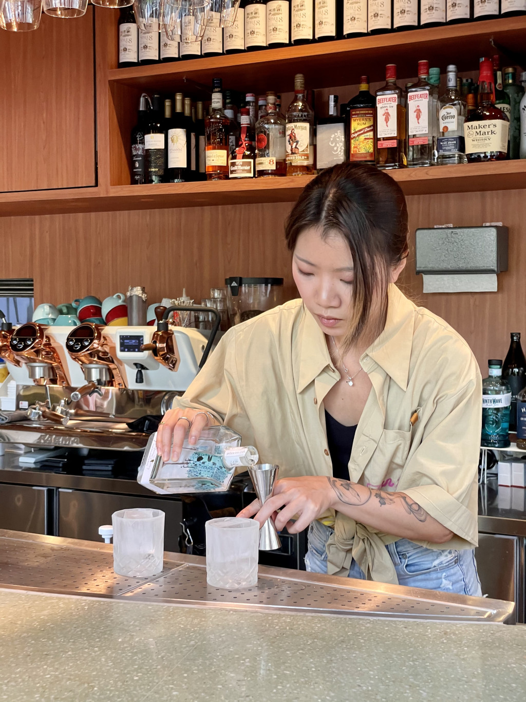▲餐厅中央设有酒吧枱,供应各式各样的特色鸡尾酒。