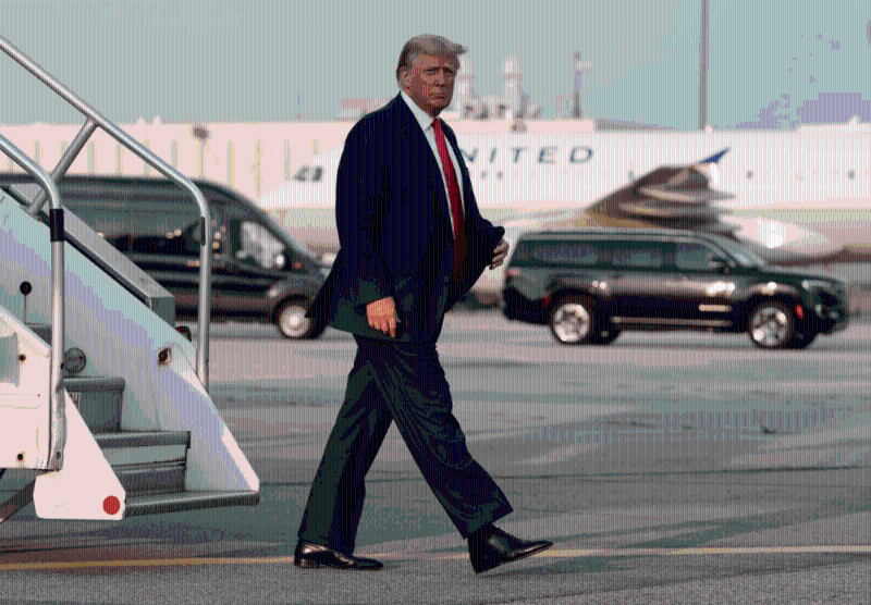 纽约时报报道,特朗普的私人飞机于晚上7点03分降落在哈茨菲尔德-杰克逊国际机场,当时距离他在社交平台Truth上发帖预告自己将投案的时间还有 27 分钟。步下飞机后,特朗普没有向传媒发表讲话,直接乘车队前往富尔顿县监狱,比他预告的时间迟了4分钟——于晚上7点34分抵达监狱后门。
