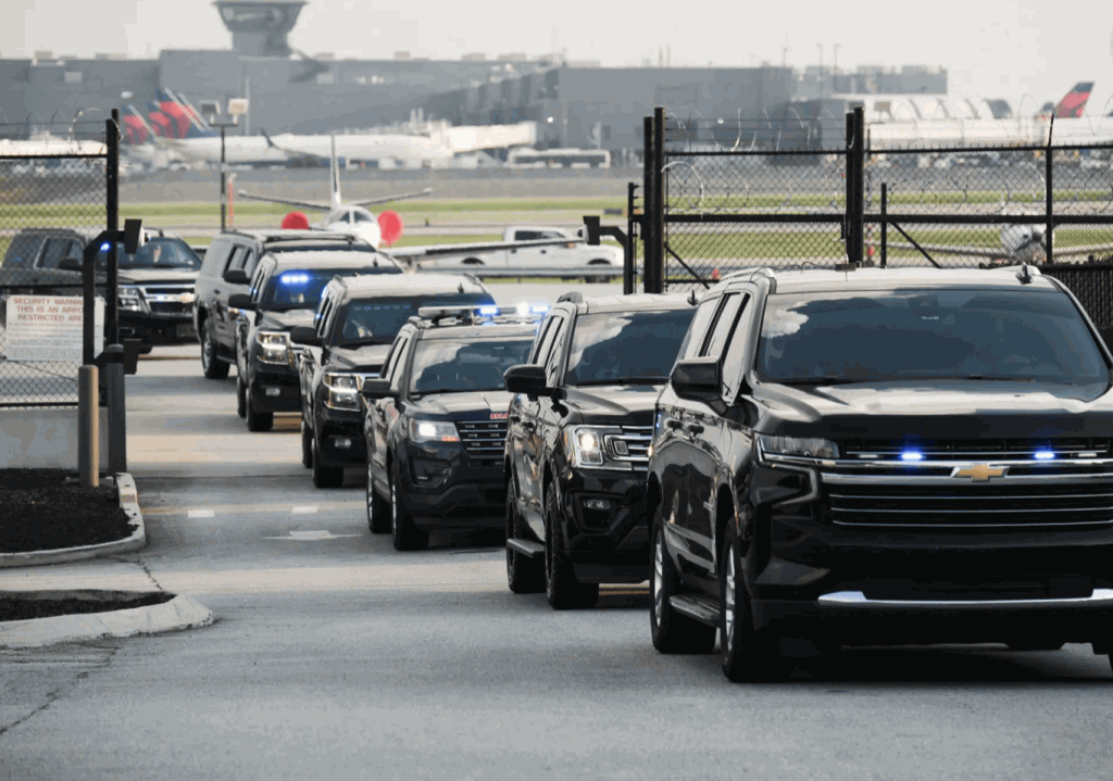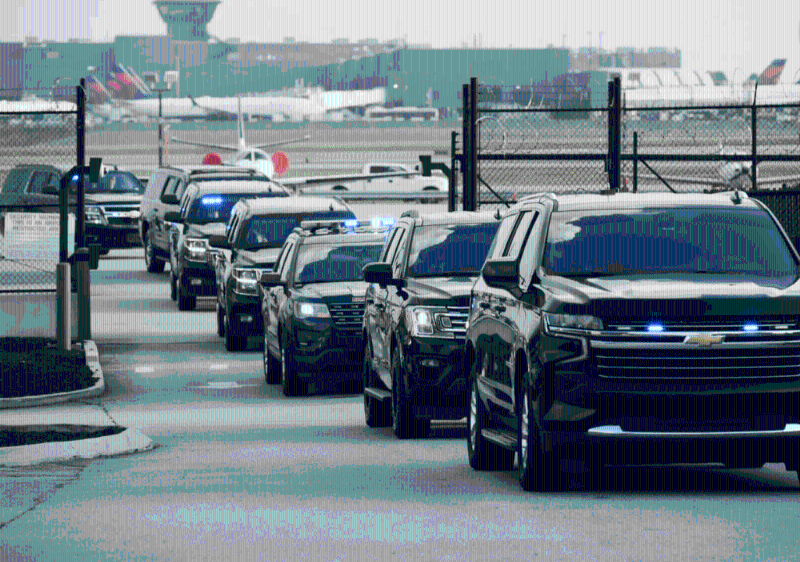 ▲步下飞机后,特朗普没有向传媒发表讲话,直接乘车队前往富尔顿县监狱