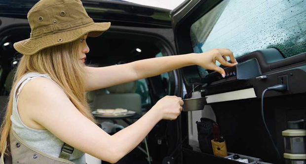 随着电动车流行,愈来愈多车迷驾车到郊外露营、车中泊,事关不少电动车支援V2L功能,可以直接供电照明及煮食。部分车厂为突显此用途,如国产极石及美国Rivian,特地开发专用餐厨组件,索性把厨房搬上车,既有工作枱,亦设煮食炉,甚至即热水机或泵水系统,实行把露营野餐重新定义。