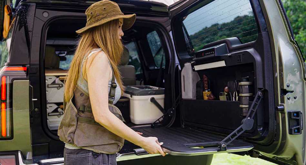 ▲Rivian之前也为电动农夫车R1T开发出滑动式餐厨组件,售价达5,000美元。