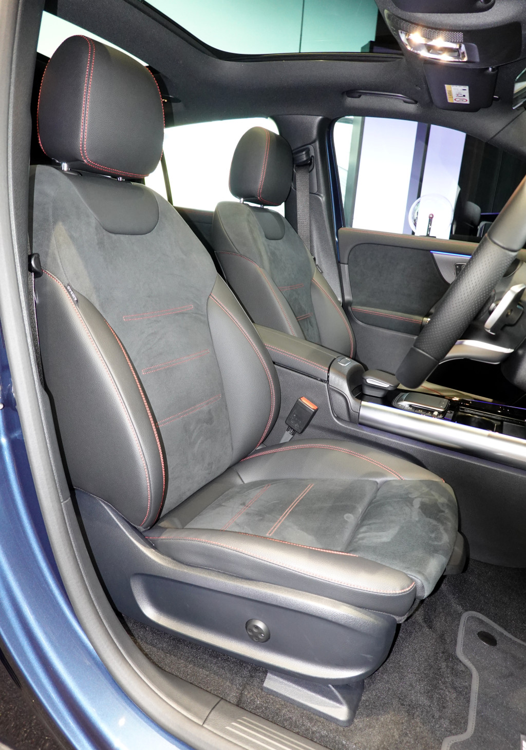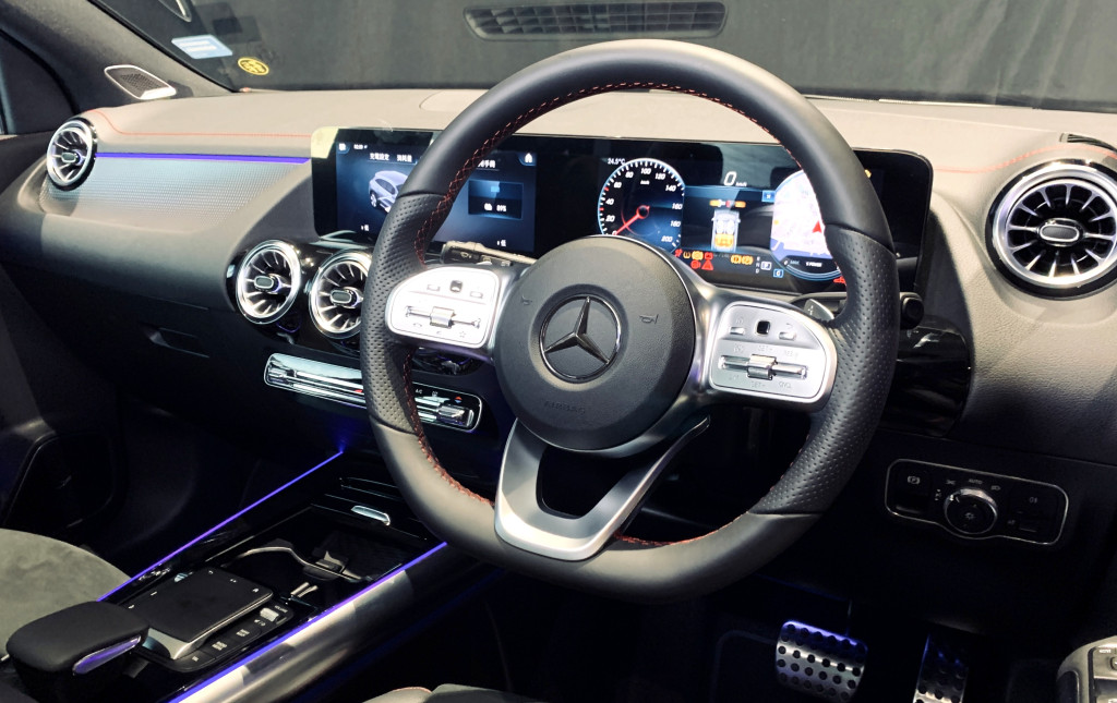 EQB250标准配套包括双10.25吋数码仪表板及MBUX触控屏幕,支援Apple CarPlay,另外还有Nappa真皮軚盘连+/-拨片,双区式恒温冷气连前后送风口、车厢气氛灯、手机无线充电板、前后双天窗及电尾门等,装备比GLB250丰富。5+2七座位安排跟汽油版GLB没分别,尾排空间较紧逼,宜载小孩或作临时载客用途。
