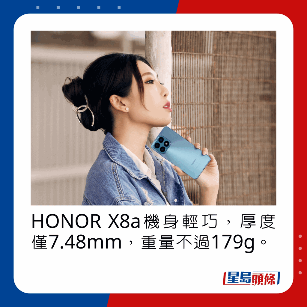 谁说Android入门5G手机就得放弃影拍表现?HONOR X8a配备1亿像素广角主镜,另设5MP超广角及2MP微距,加上AI技术及影像处理,日摄夜拍质素有板有眼。 X8a另一吸引地方,是6.7吋FullView荧幕拥有FHD+解像度之馀,还支援90Hz更新率,以及取得TUV Rheinland低蓝光认证。效能方面, X8a处理器採用MTK Helio G88,内置8GB RAM及128GB储存容量,至于4,500mAh电池容量不算大,但支援22.5W有线快充。