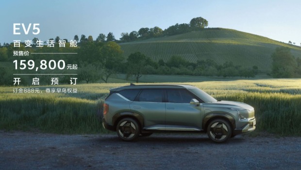 韩国Kia在刚开幕的第26届中国成都车展(8月25日至9月3日举行),全球首发了全新电动车EV5。这款纯电动SUV旋即在中国内地接受网上预购,售价由人民币159,800起,而顾客只需交付人民币888订金,已可尊享多项早鸟优惠。车厂暂未披露新车的电池配置与性能参数,预期留待今年10月举办的Kia EV Day才会正式公告。
