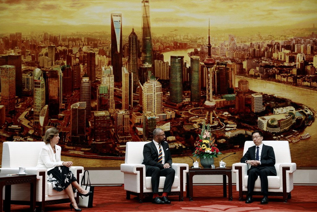 ▲韩正与访华的英外长克莱弗利会面。路透社
