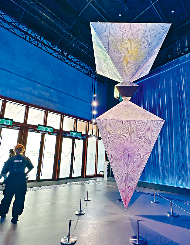 ▲刘德华在大型的金钢柱装置亲手以直线画禅绕画,画了四天到眼睛出红筋仍不愿停下来。