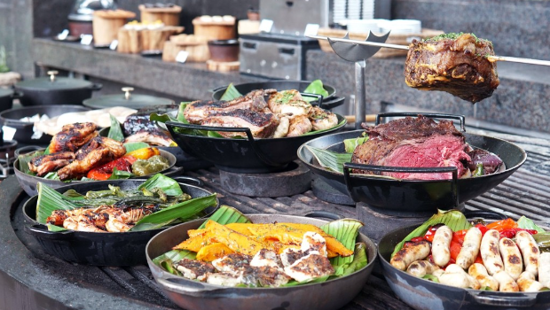 今次的香港君悦酒店 The Grill 露天池畔餐厅烧烤自助晚餐,将于池畔餐厅供应自选烧烤美食、新鲜蔬果特饮及特选冰茶。烧烤晚餐精选多种新鲜冻海鲜如大西洋龙虾、带子和自家制烟熏三文鱼等及一系列清新开胃的特制沙律。重头戏为即席炭火烤制烤肉,推介必吃西班牙烤乳猪、炭烧西冷牛扒、烤啤酒鸡和纽西兰羊架等;亦有鲜嫩烤海鲜,如炭烧香辣虎虾和越式鱿鱼等。