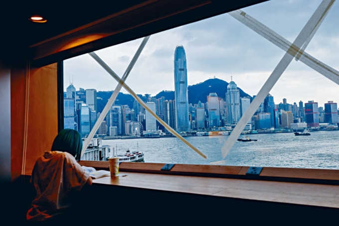 ▲风暴来临前的平静,但店铺已在玻璃贴上胶带防风。