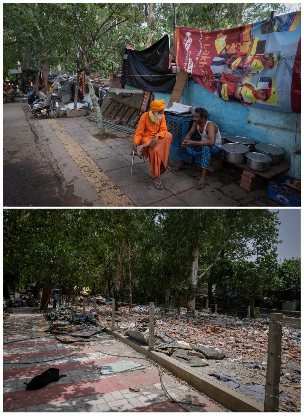 ▲新德里一处被拆除的贫民窟清拆前后对比。路透社