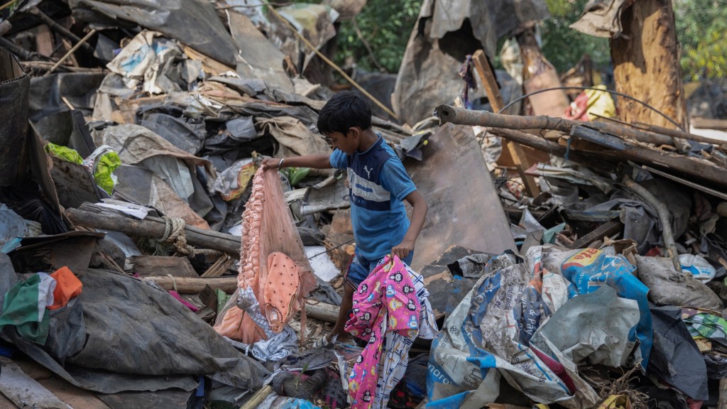 推土机铲平他们的家后,他们拾起散落在路边的物品,装进一辆三轮车,运到10公里外的新住处——一间套房,月租要2,500 卢比(约合人民币220元)。 但他们只住了2个月,8月份又搬回去简塔营未被推土机夷平的位置,租金还更贵,每个月要3,500卢比(约308元)。 库马尔说,孩子每天上学太困难了,“我希望他们能够学习并取得好成绩,我们是为了他们才回来的”。