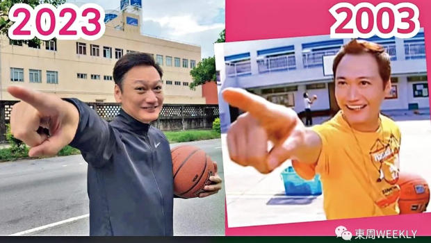 陶大宇的20年前后照片,同样笑得开怀地拿着篮球,对于这个“倒转篮球”的姿势,他表示:“20年前的我,见识过外面的世界,再重回TVB拍剧集《青出于蓝》,对照现在的我,收获了更多,更深感人生的奇妙。”